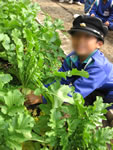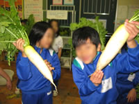 夏野菜を栽培,収穫して,その楽しさや喜びを感じていた子どもたちは,次の野菜栽培に意欲を高めていた。そして自分たちで何を,どこに,どのようにしてと考え,「わたしたちの大根作り」が始まった。夏に育てた,キュウリ,トマト,ナス,ピーマンと違って,今回は土の中で生長する大根と言うことで,その期待と不安が子どもたちの意欲の継続へとつながっていた。