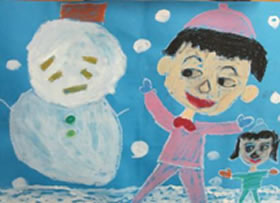 | 教科書の写真をきっかけに,実際の外の様子を見て気が付いたことを話し合う活動を通して,冬の季節になったことを身近な自然や生活の中でとらえ,絵や文に表していく。 |