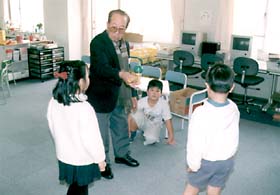 このあと「地域の方々に昔遊びを教えてもらおう」(老人人口の少ない地域)では,地域のお年寄りや保護者の方々とのふれあいを深めた。