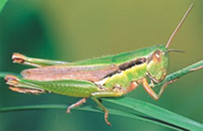 ●全国の水田に多く見られる,中型のバッタ。イネの害虫であるが,昔は甘辛く味付けして食用とした。現在も地方の味として,土産物や珍味にされている。