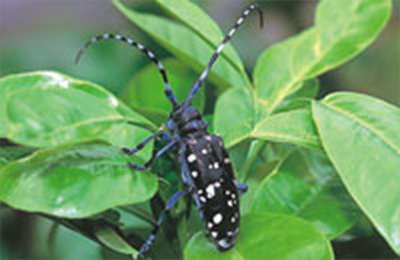 ●ミカン・イチジク・ヤナギなどを食害する。体は黒色で白い紋がある。普通のカミキリムシ。