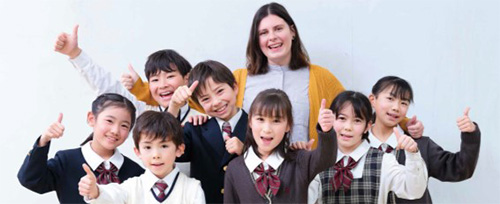 今年度から,5人のネイティブ教員が3クラス5展開の習熟度クラスを担当し,同時展開をすることで,担任も学年全部の児童の英語への取り組みを把握できるようにしました。日本人の先生のサポートで,初めて英語に触れる子どもたちも,英語嫌いになることがないよう丁寧にフォローしています。