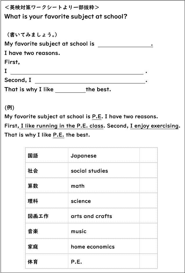 中学生になった時の学習定期テスト対策・高校入試・大学入試のため,「読む」「書く」「聞く」の文法や語彙力をも視野に入れたきっちりとした英語を大切にしています。