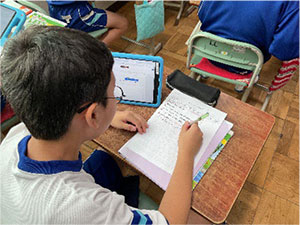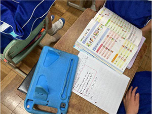 なお、本校は私立小学校であるため、1年生から洋書の教科書を用いた授業展開をしている。また5・6年生は洋書と検定教科書(Bluesky elementary)を併用した授業展開を実施している。授業はALTと日本人教諭のTT(Team Teaching)を実施しており、複数教員で展開できるメリットを最大限生かしながら実践している。
