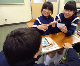 どのようにして各単元のコミュニケーション活動の必然性を作り,場面設定するかは,外国語活動の目標を達成するための大変重要な要素である。小規模校では,学級内で関わり合える児童の数が少なく限られているため,より一層の工夫が必要である。今年度は相手意識を持たせた活動とするため,授業公開の機会を多く設定した。これは,市内外の先生方に対して授業参観や授業研究の機会を提供する一方,児童にとっては来校者を相手にしてコミュニケーションを図る機会とすることをねらったものである。また,吉田小学校の友達に向けたビデオレター等のやりとりによるコミュニケーション活動も実施してきた。これらの活動や映像は,パフォーマンス評価としての見取りや資料として活用できることもわかり,今後も大切にしていきたいと考えている。