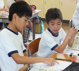 本校の中学年,高学年の担任は,これまで外国語活動の指導経験がなく,英語の教員免許を有しているわけでもない。事業指定により配置された専科教員(小学校2校兼務)と相談して指導計画を立てたり,指導についてのアドバイスをもらったりしながら,授業実践を重ねることで外国語活動の授業力をつけてきている。担任自身が外国語活動の時間を児童と一緒に楽しむこと,授業においては外国語を学ぶモデルとしての役割を果たすことが授業力をつける上で何より大切ではないかと感じている。