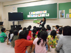 - 読み聞かせを聞きながら,知っている色や果物の英語を楽しそうに口にしていた。