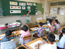 1時間目は,音の違いについてよく気が付いて練習していた。担任として,音の違いを言葉で説明することを求めてしまったが,違いを感覚的に感じられていれば十分であったと思われる。英語での発音をたくさん聞く中で,ALTの口をよく見ることや,音の違いに耳を傾けることの良さにも気づき,前向きに活動する姿が見られるようになった。このような姿勢を身につけて高学年へとつなげていきたい。3年生ということもあり,時間が経つと忘れてしまうこともあるが,子どもなりの気づきや感覚のするどさを大切にして,これからも外国語活動の時間を進めていきたいと考えている。