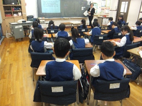 一方,グローバルコースでは,日本語による学習指導が主であるが,英語と図工は外国人教員と日本人教員のティームティーチングよる英語での指導を行っている。