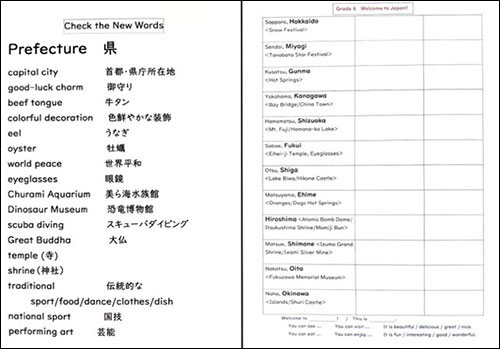Unit 2 “Welcome to Japan.” では最初の見開きに日本各地の紹介があり,6年生は興味津々です。「ここ,知ってる!」「僕,行ったことがある!」と様々な反応が起こり,地名や建物,行事の名称を確認した後,Listen and Guessに挑戦,デジタル教科書になって活動のテンポが格段に良くなりました。Blue Sky elementaryのリスニング活動はまとまった文章を聞くので,難易度が高い印象を持ちますが,音声には必ず文脈が与えられており,6年生は好奇心や「ワクワク感」をくすぐられるのか,集中して聞く姿勢が見られます。1回目の音声の後,子ども同士で「聞き取れたこと」を共有し,同時に教師が「こんなキーワードがあったね」と提示すると,「もう一度聞きたい!」という声が返ってきます。先ず「大意を掴む」体験をし,聞いて分かる「語彙を知る」ことで,限られた言語知識でも内容を類推する力が発揮されます。単に正解を求められる活動と違い,子どもたちは興味をそそられ,学習意欲につながるようです。2回目の音声では紹介された語彙が出てくるたび,「なるほど,この単語を言ってるね」という納得の表情で頷きながら聞いていました。