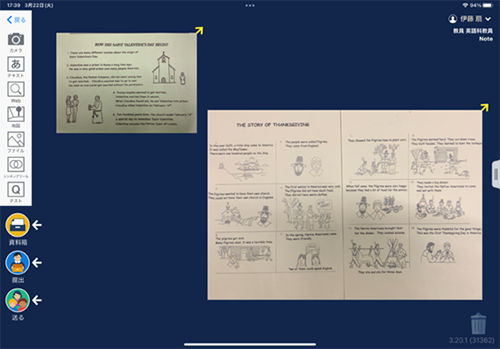 資料6:Reading教材"ESL Teacher’s Holiday Activities Kit"とロイロノート・スクール
