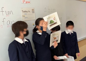 新型コロナウイルス感染症の拡大でマスクをしての学校生活から2年が経ちました。長期休校で遠隔授業による指導法を模索した頃と違い,2021年度は感染予防策に則って「学校でできること」を考えながら授業が始まりました。私学である本校では1874年の創立以来,英語を専門に教える「専科教員」が授業を担当していますが,英語独特の「音」を楽しんで進むはずの学習がマスクによって困難となり,友だちとの関わりやゲーム活動も厳しく制限されました。その中で高学年の主たる英語教科書として啓林館の『Blue Sky elementary 5と6』が導入され,他の2つの補助教材(フォニックスに関するものと本校独自の検定プログラムに基づくもの)と共に3本柱のカリキュラムが本格的に始まりました。