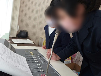 1年生は,入学当初は日本語のみの放送だが,2学期からは上級生のサポートを受けながら英語での放送もできるようになった。高学年になるとマニュアルを見なくても英語での放送ができるようになった。
