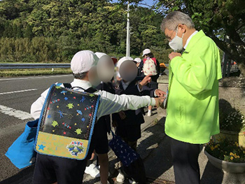 登校時に,管理職が校門や玄関でスモールトークを行った。毎朝,まず「Good morning! How are you?」から始め,天気や曜日,朝食など基本的なことについて会話をした。その後,学校行事やテレビ番組,週末の過ごし方,地域の出来事等も話題にし,一人一人の児童とやり取りをした。イングリッシュタイム(後述)で学んだ英語表現や単語の活用の場にもなるように,会話や表現を工夫した。