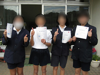 英検5級の受験については,令和元年度の6年生2人,令和2年度の6年生4人も全て合格した。その影響もあって,令和3年度は6年生1人に加えて,5年生5人が受験を希望し,全員が合格することができた。それを見ていた4年生は,「私たちも来年は」と意気込み,5年生は「6年生では英検4級合格を目指す」と更に高い目標を設定していた。合格証は家庭でも大事に扱われている様子で,目標をもって頑張り,十分な達成感を得ることができたと考える。