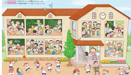 ネイティブ教員による「English Code」のレッスンの他,「Weblio Study」「Weblio英会話」,検定教科書「Blue Sky」の授業をバランスよく行っています。「English Code」と検定教科書「Blue Sky」,「Weblio Study」を相互的に学ぶことにより,英検対策をはじめ,楽しいだけの英語で終わらないはつ小英語教育として,小さいころから英語学習を始めた子どもが,中学校以降の英語学習や英語活動で苦労することのない英語を心がけています。