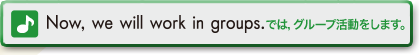 • Now,we will work in groups. では、グループ活動をします。