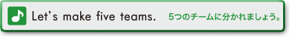 • Let's make five teams. 5つのチームに分かれましょう。