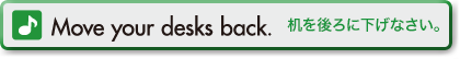 • Move your desks back. (机を後ろに下げなさい。)
