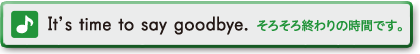 • It's time to say goodbye. そろそろ終わりの時間です。