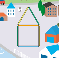 図形の構成とは,1.面(色板など)を合わせたり,2.線(棒など)をつないだり,3.点(ジオボードの点など)を結んだりして図形をつくることをいいます。