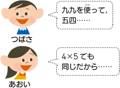 例えば,a×b=b×aでは,下のように5×4の答えを交換法則を活用して見つけさせる中で,この法則を意識させるのです。