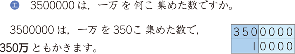 第3学年では,下のように,数の範囲を万の単位まで拡張して,数の相対的な大きさについての理解を深めることをねらいとしています。