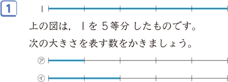 数としての分数を理解させるためには,下のような「1」を分割するという考えが大切です。