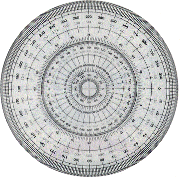 分度器は,ものさし以来の新しい計器となります。分度器には通常用いられる半円の分度器の他,全円分度器もあります。