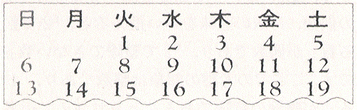 剰余類という用語は,学習指導の上では用いませんが,身近にあるカレンダーは,7でわった剰余類を示しています。下の例では,火曜日は余りが1であり,水曜日は余りが2の曜日になっています。