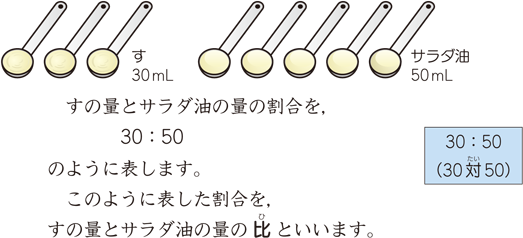 a:bの比の値は,aがbの何倍になっているかを表す数です。このことから考えても,比は割合の1つの表し方であるといえます。