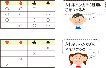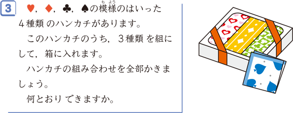 また,CCですから,上の問題では,どのハンカチを残すかを考えても解決することができます。