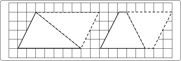 T 今日はこの2つの図形の面積について考えます。 S 三角形と台形だ。 S 三角形の面積は前にやっているから,求めれるけど,台形の面積を求めるのかな? T 問題を書きます。一緒にノートに書いてください。 次の三角形と台形の面積は,どちらが大きいでしょうか。 S あれ,どっちが大きいんだろう。 S 三角形は,たぶん…7×4で14cm²だと思うけど…。 |