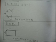 | C2: | 正方形は,x=yで,両方とも3のときです。正方形は,4つの辺の長さが等しいから,高さの3cmと同じ長さにならないといけないからです。 |