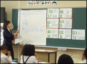 指導法改善担当の私と担任の2人で,全単元を通して授業を展開する。TTでは8時間,習熟の時間の3時間では学級を前列と後列の2つに分け少人数授業で行う。TTでは主にT1を担任が担当した。私はT2で,主に理解がやや遅い児童への支援や電子黒板の活用を毎時間行った。