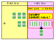 くり上がりのあるひっさんは,一のくらいからたして,十のくらいに1くりあげる。