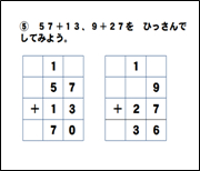 (1)目標 (2位数)+(2位数)で一の位に繰り上がりのある筆算ができる。