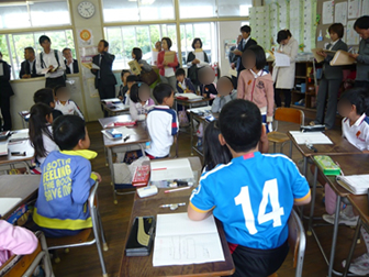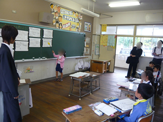 ・ 声に合わせて動作化をさせ,場面をイメージさせる。(2回) ・ ねこが好きな人,犬が好きな人の数の2つの大きさを表すと分かりやすいことに気付かせ,2人組での動作化を取り入れることで,テ-プが2本いることの必要性につなげたい。 |