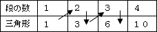 エ:前の段の三角形の数+次の段の数=三角形の数 1人