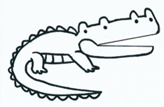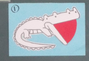 | 出あう | (1) 4枚の口を開いたワニの絵を見る。