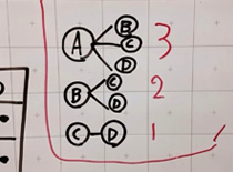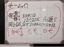 C チームDは,図と計算で考えました。1チームが3試合するから,全部で12。でも,それぞれが重なっているから2で割ります。