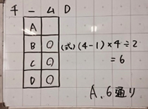 ・主問題2では,4チームを5チームにした時の試合数を問題にしたが,自分で理解できたやり方を使って,一人一人が容易に問題を解くことができた。
