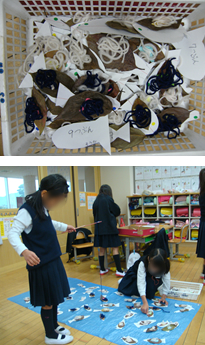 ○生活場面や生活科の学習と関連させた学習を展開したことで,目的意識をもち長さの学習への意欲が増した。生活科の魚釣りの活動では,友だちに,「9つ分だよ。」と伝える姿が見られ,学んだことを進んでいかそうという意欲が感じられた。