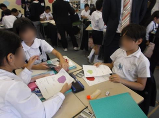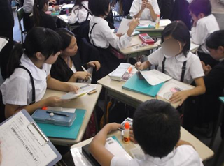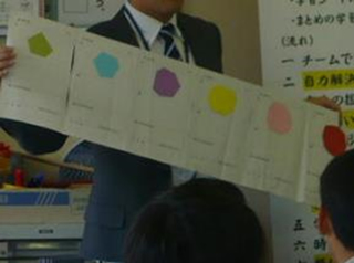 また,児童だけが説明し合う活動ではうまくいかないことが多い。「相手に自分の考えをうまく伝えられない。」「自分の考えを分かってくれない。」という振り返りも多くあった。教員が指導してしまえばそこまでだが,この"うまくいかない"活動を自覚することが,協働学習を成り立たせる基盤となっている。「この人は何を考えているのか」「相手はどこでつまずいているのか」など,相手の「分からない」を想像するところに,協働学習のキーワード「磨き合い・高め合い・支え合い」が生まれてくる。本学習を通して,相手の状況に合わせて言葉や伝え方を変えたり,自分の考え方そのものを見直したりする姿が子どもたちに見られるようになったことは,その後の学校生活を送る上でも大きな成果となった。