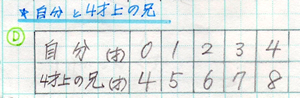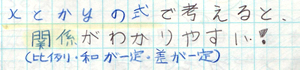 表にするとそれぞれの変化の様子が見やすい。そして,それを仲間分けするという視点を与えることで,それぞれの変化を細かく見ることができる。どのように変化しているのか,増えているのか,減っているのか,変わらないものはあるのかなど,子どもたちはそれぞれの変化に目を向けて,仲間分けしていた。さらに既習の文字に置き換えることで,関係を捉えることができていた。