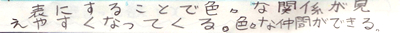 授業の中では,「ふきだし法」を活用し,子どもの気付きから始まる授業を展開している。問題に出会ったときに思ったことを「ふきだし」にかき,それを交流することから,授業を始め,気付きをもとに解決の見通しの練り上げをするとともに,本時で大切にしたいところを明確にし,めあてを設定していく。設定しためあてに向かって,自分の考えを表現し,さらに交流することで,よりねらいに迫っていく授業が大切だと考えている。