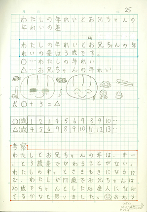 「お兄ちゃんが20歳になったときには・・・。」と,△=20の場合の○を考え,深めることができた。