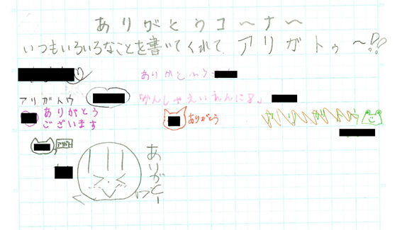 その後,自分のノートにコメントを書いてくれた人に,「ありがとうマーク」を書いて気持ちを伝える時間をとった。