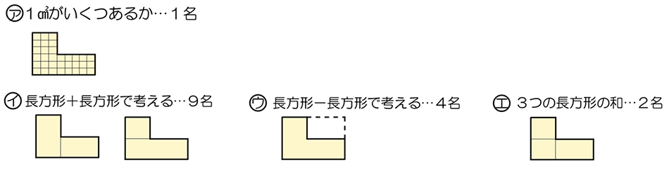 ● L字型の面積は,長方形に分けると計算できることが分かった。(3名)