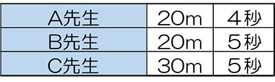 同じ道のりなのに時間が短いC先生の方が速いことが分かります。 |